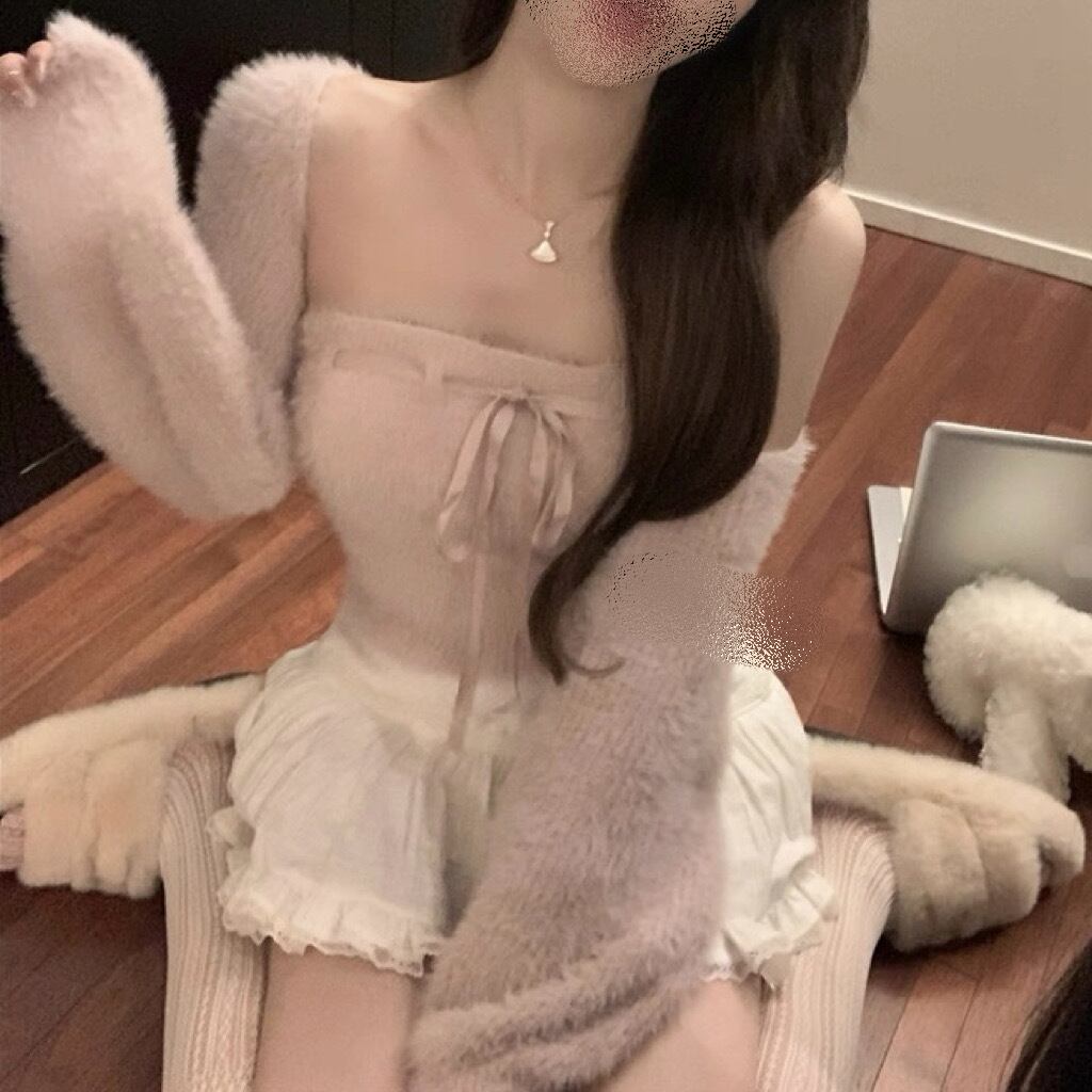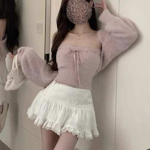 全2色リボンシャギートップスセット