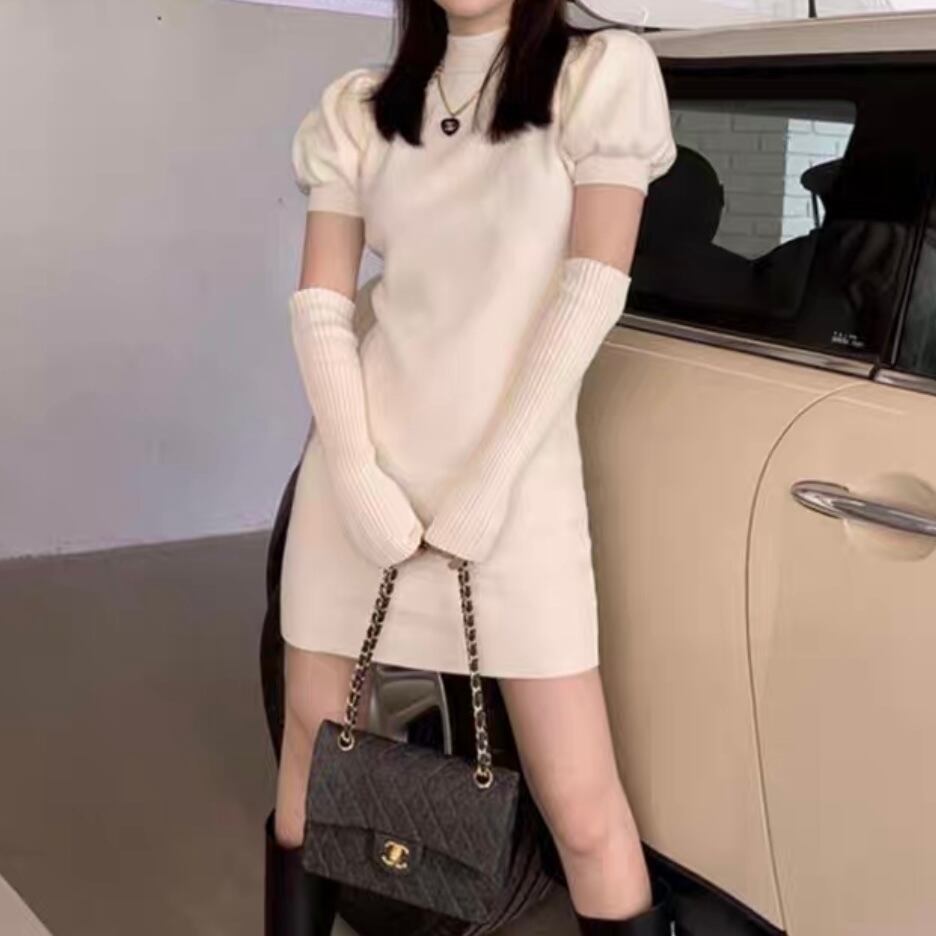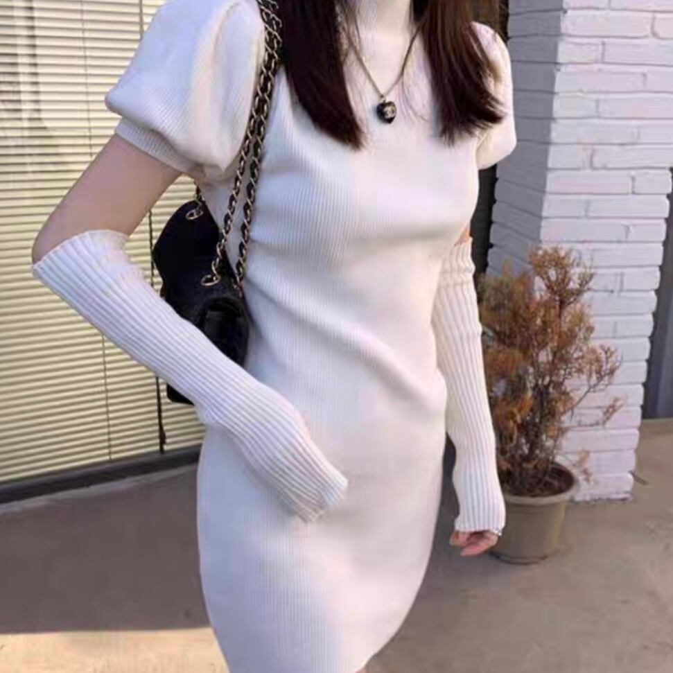 全4色アームカバー付きニットワンピース