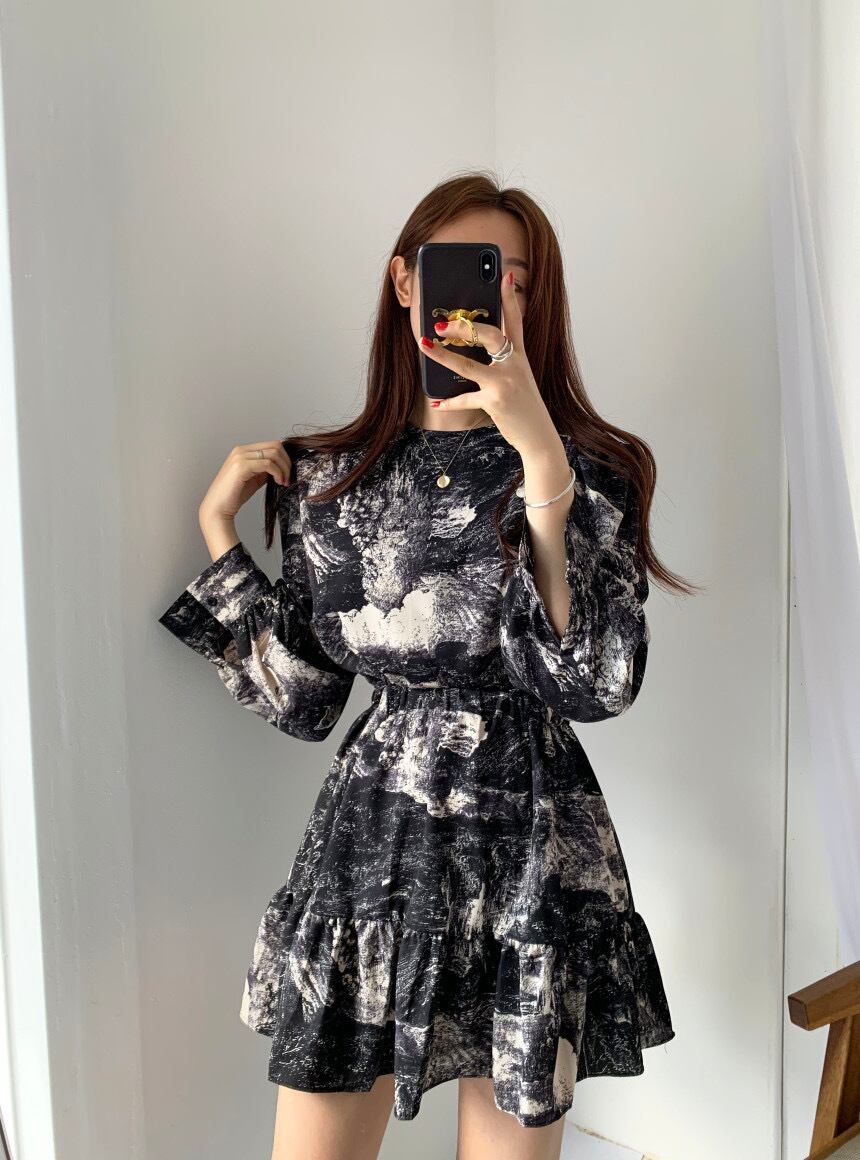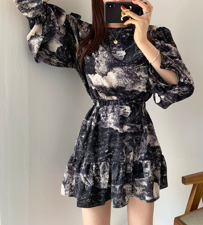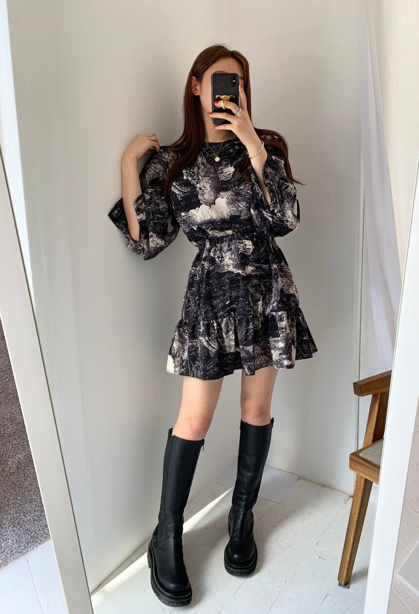 水彩柄ミニワンピース
