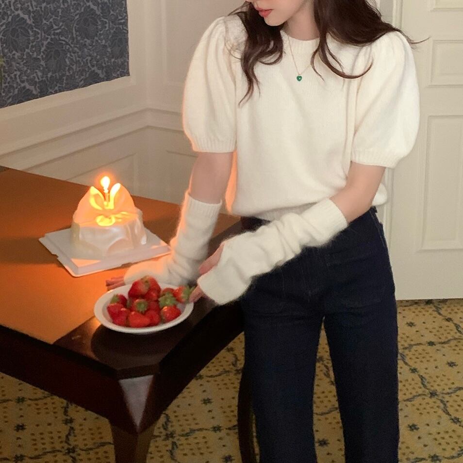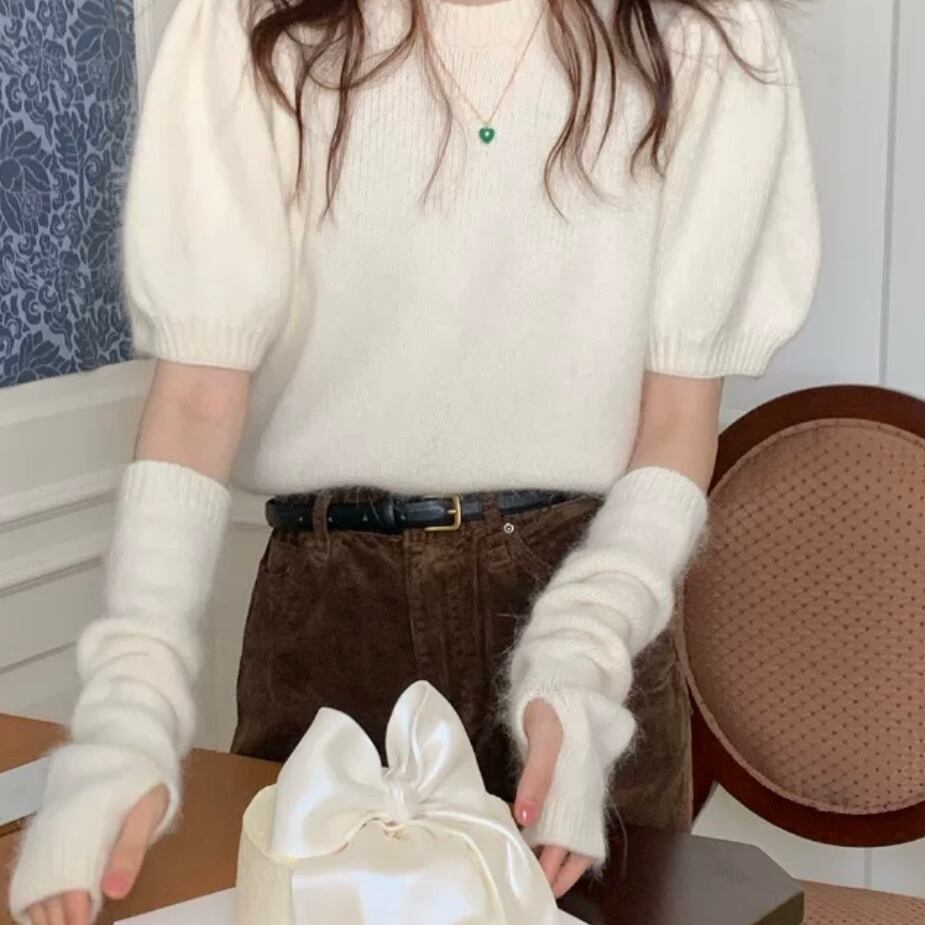 アームカバー付きニットトップス