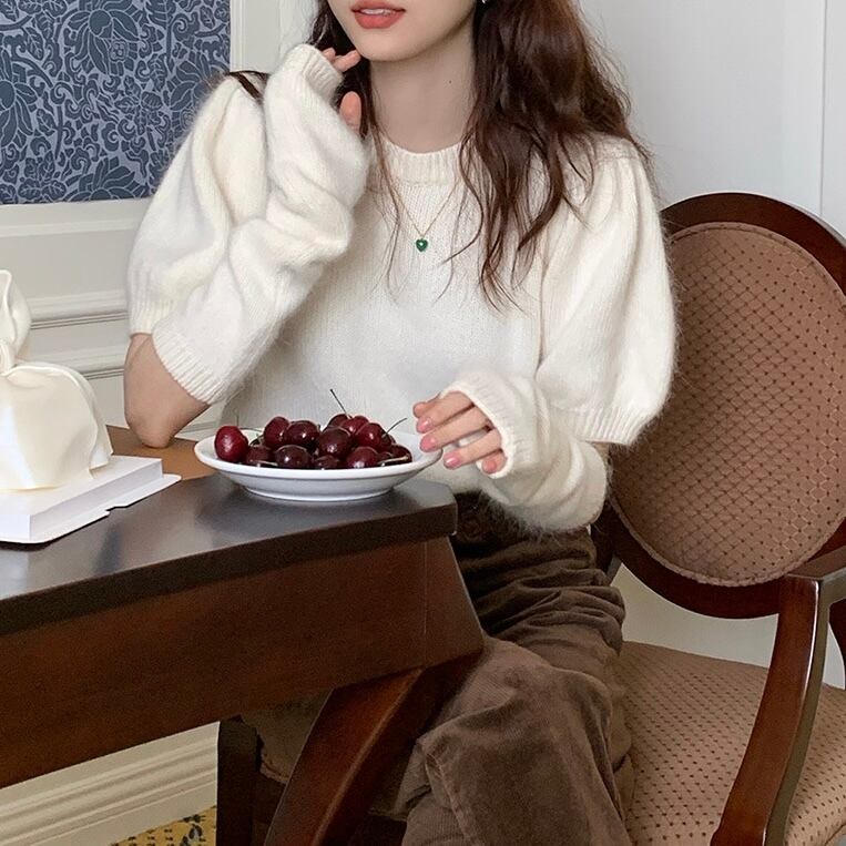 女の子らしいホワイトのニット…୨୧
