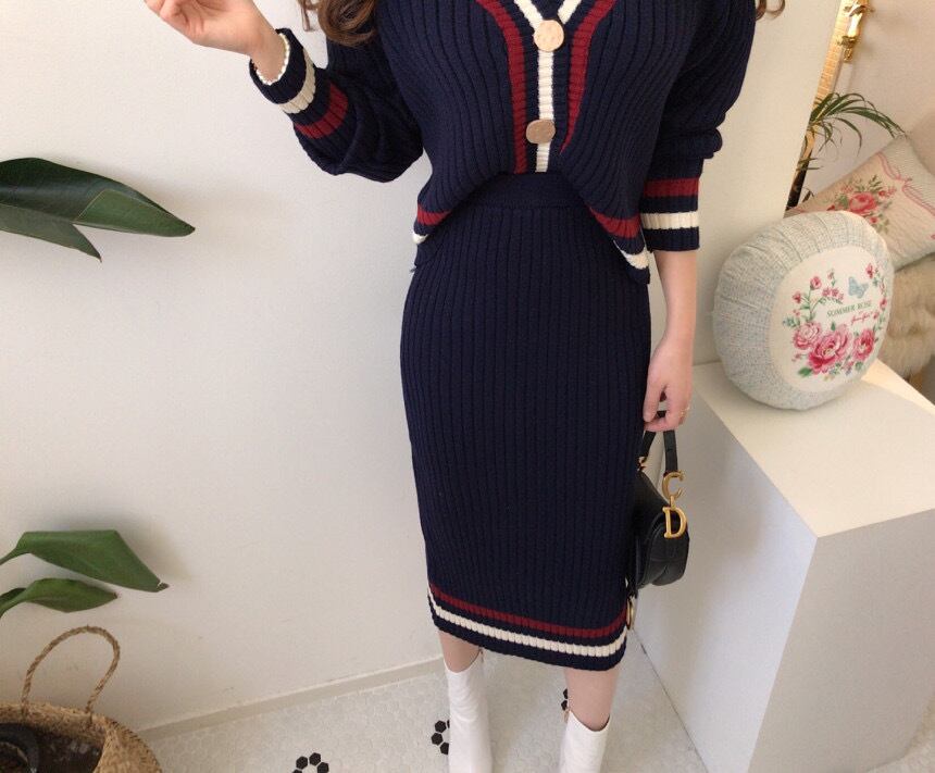 トリコロールカラーニットセットアップ2色