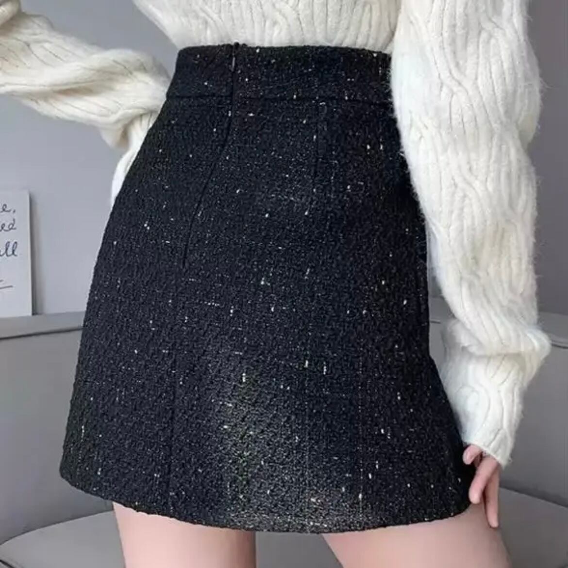 全2色パール付きツイード台形ミニスカート