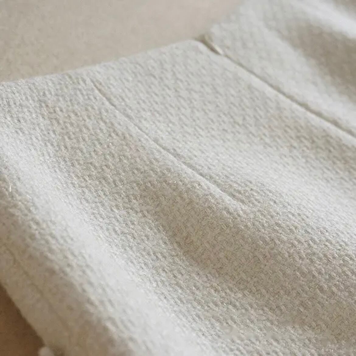 全2色ボタンデザインシンプルツイード台形ミニスカート