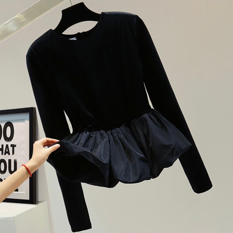 ドッキングブラックペプラムトップス