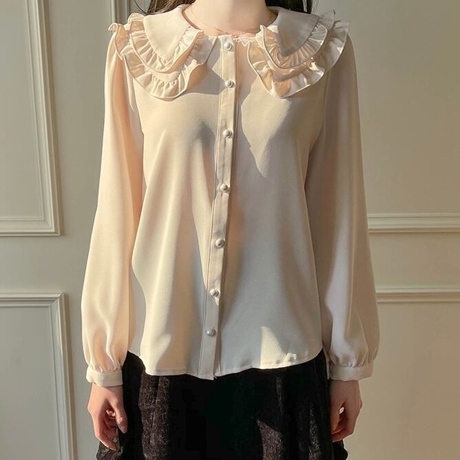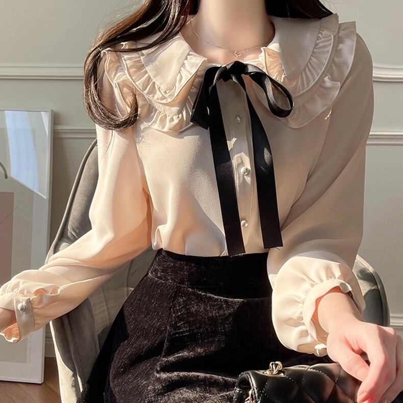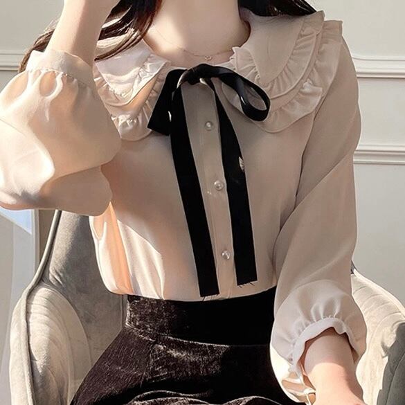 リボン付きフリルブラウス