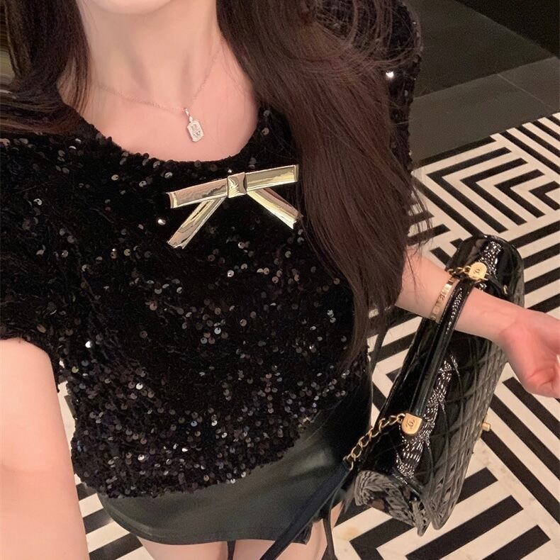 リボン付きブラックキラキラトップス