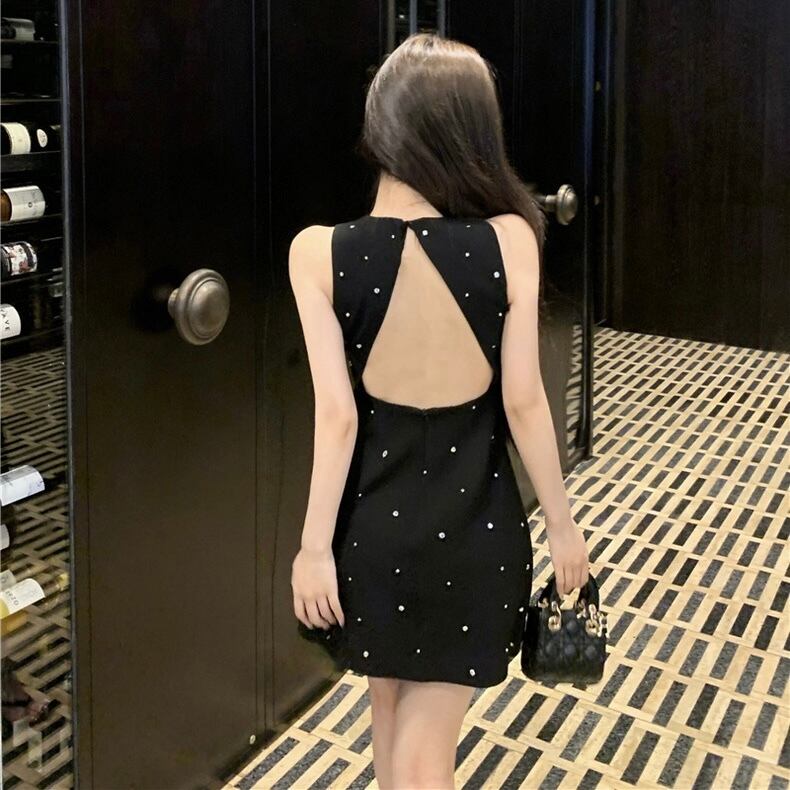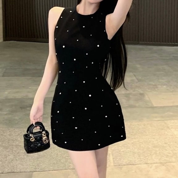 ブラックビジューノースリワンピース