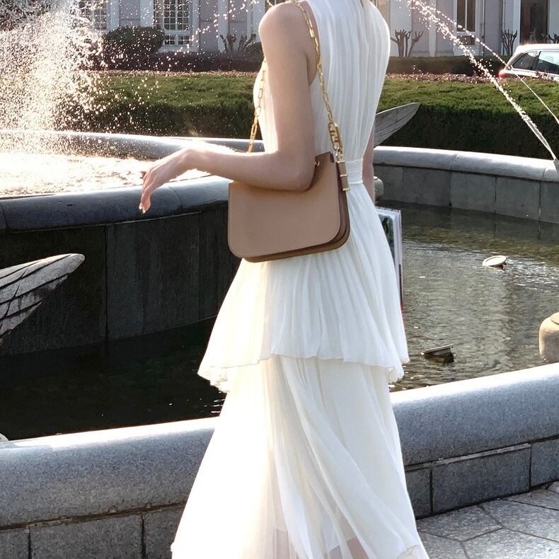 ティアードプリーツロングワンピース