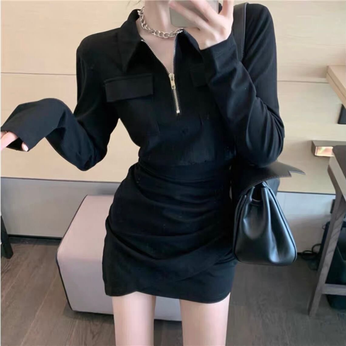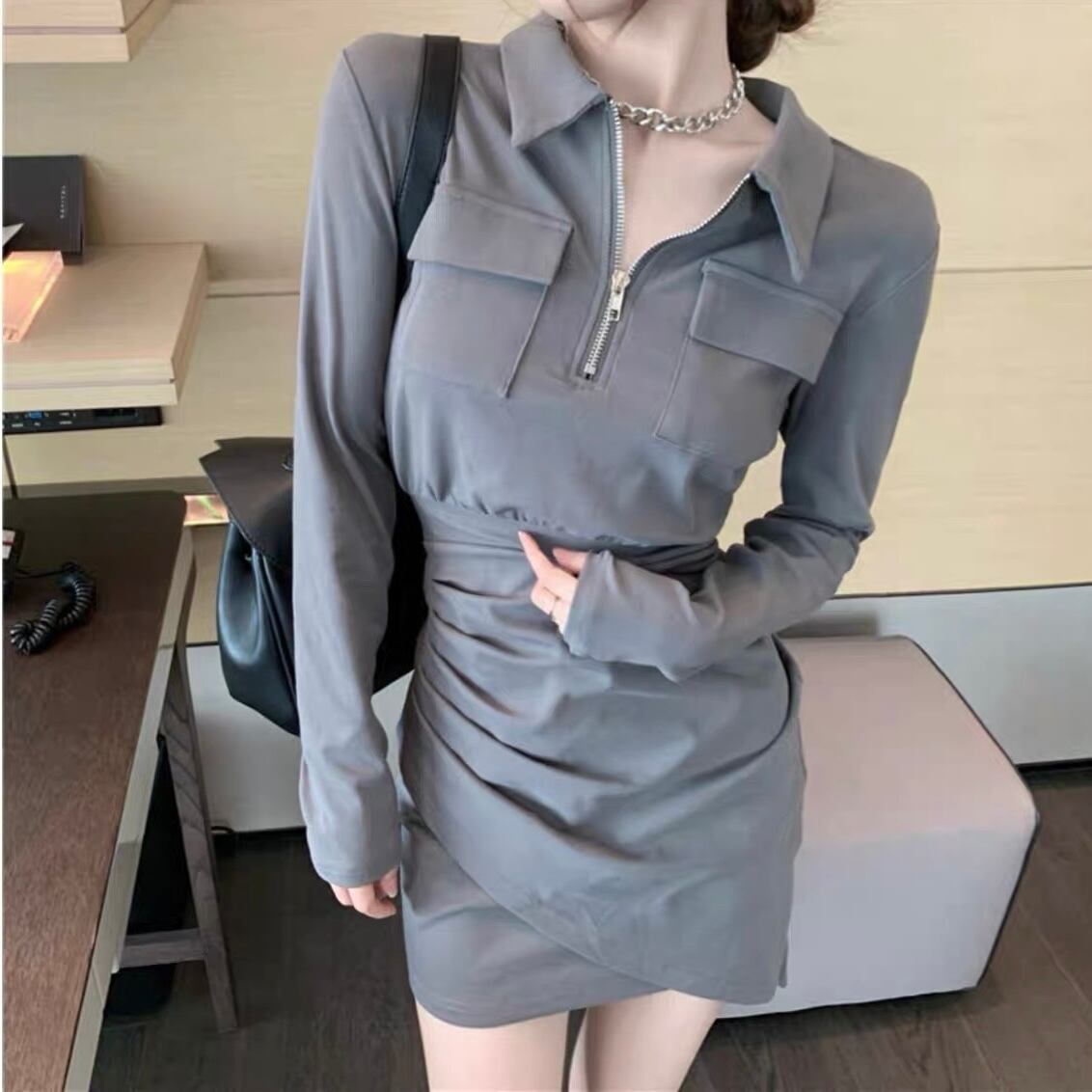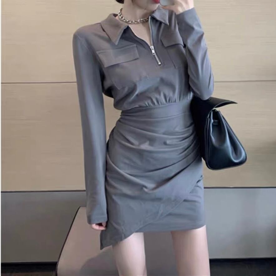 全2色ハーフジップウエスト切り替えアシンメトリーミニワンピース