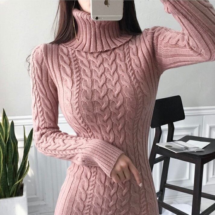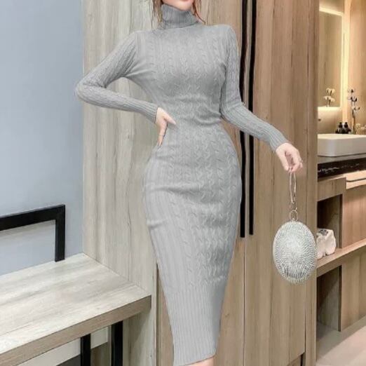 Tall✰︎全5色タートルネックケーブル編みニットワンピース