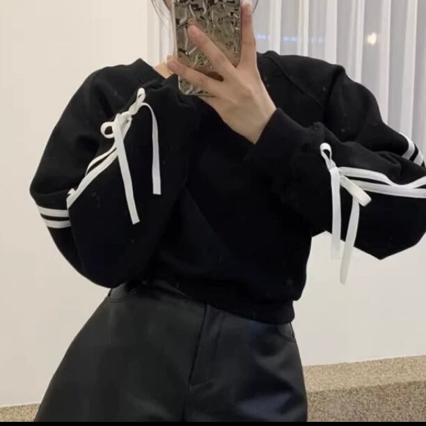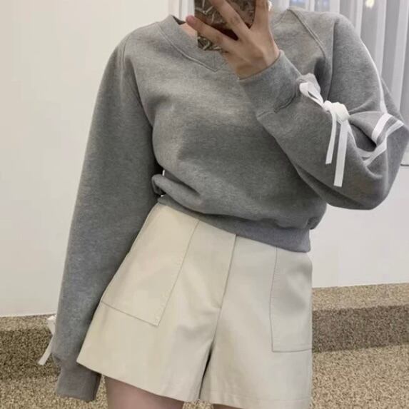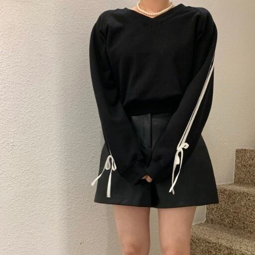 全3色Vネックラインリボントップス