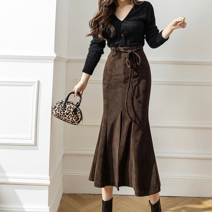 Tall✰︎全3色コーデュロイハイウエストフロントスリットマーメイドスカート