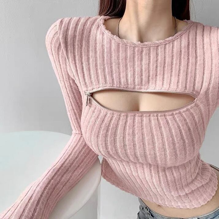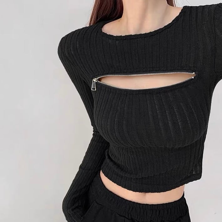 全3色バストファスナーデザイントップス