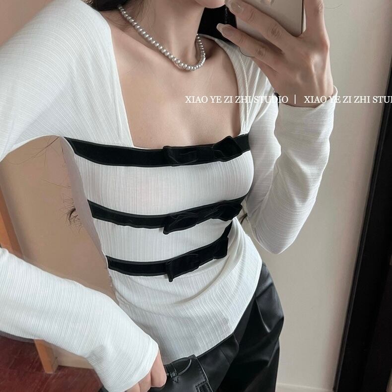 3連リボン長袖Tシャツ