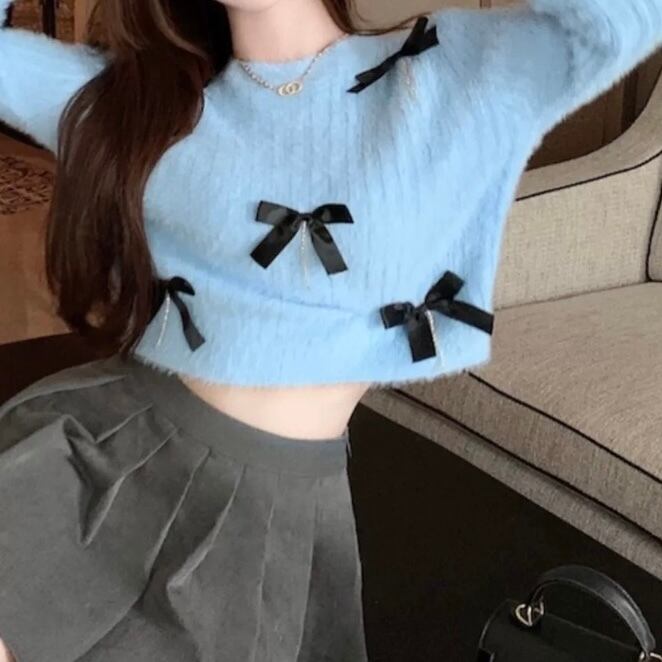 全3色立体リボンセーター