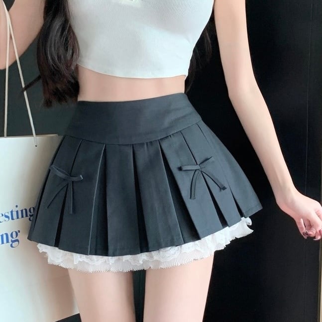 全2色裾レースプリーツスカート