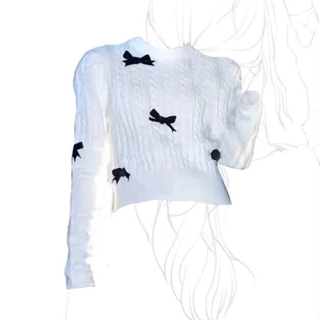 袖切り替え立体リボンセーター
