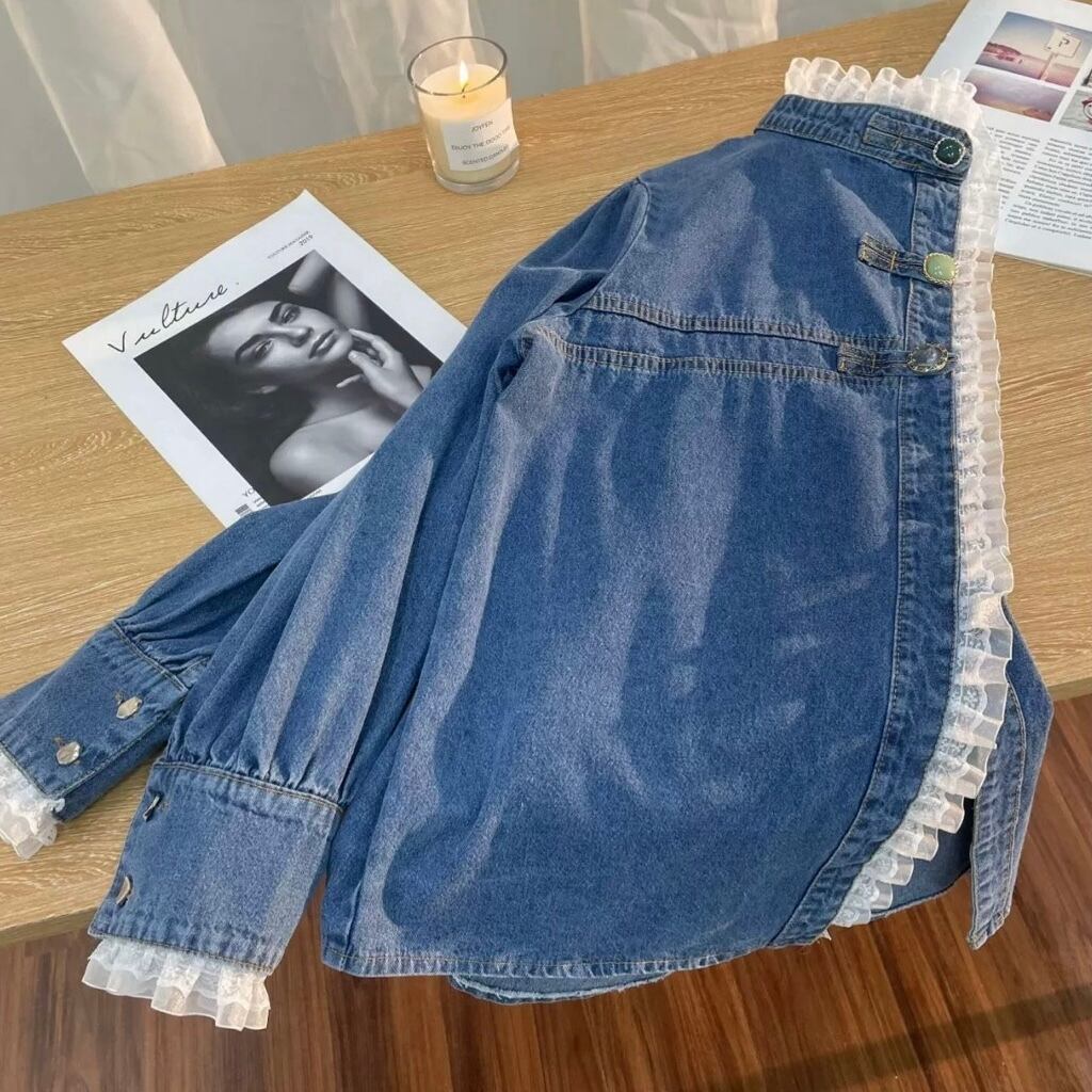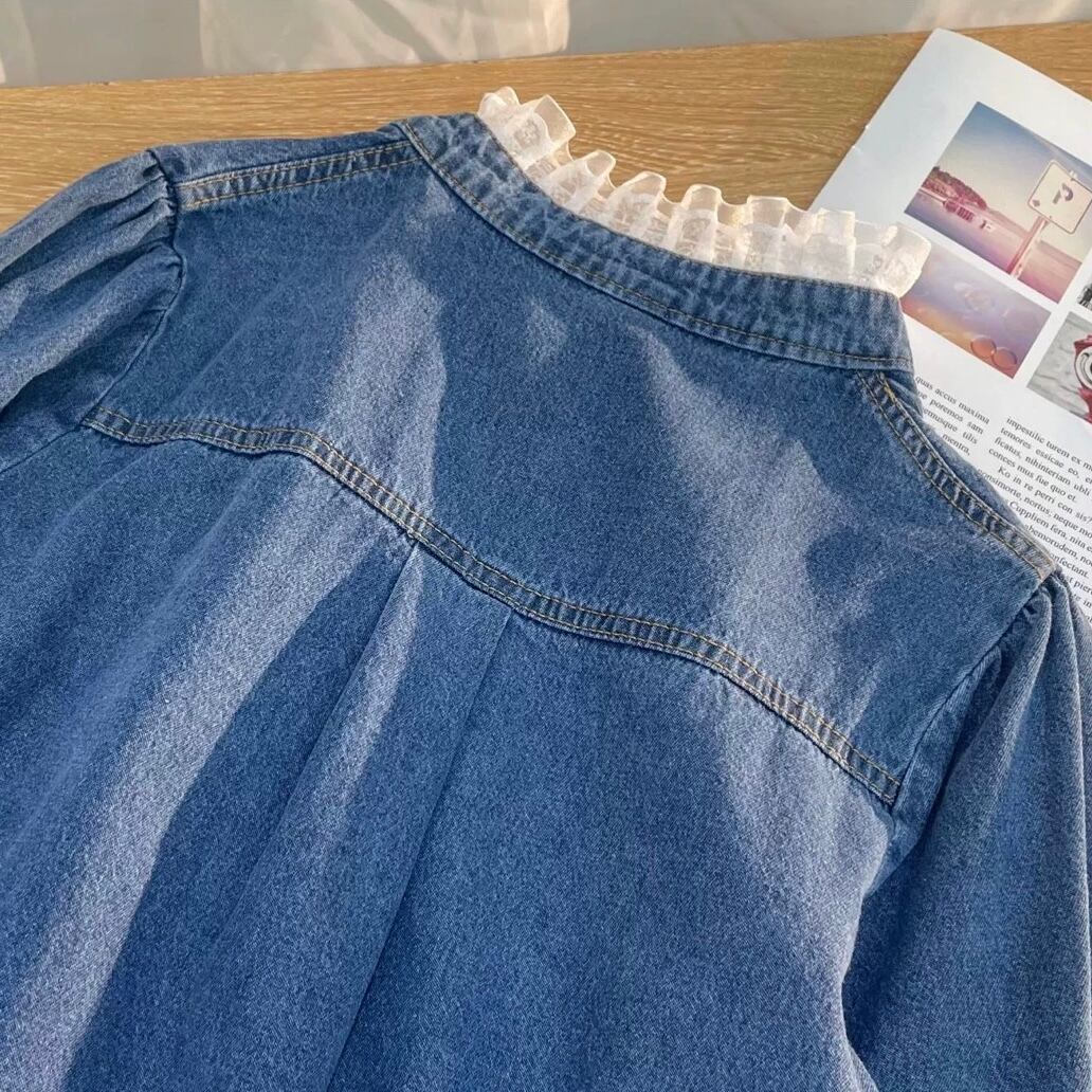 レースデザインデニムシャツ