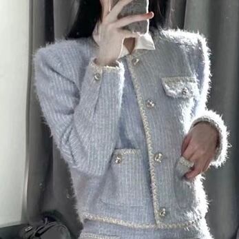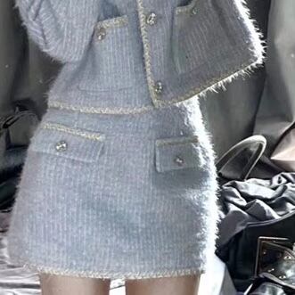ノーカラー×ミニスカートブルーセットアップ
