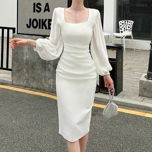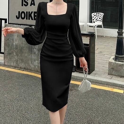 Tall✰︎全2色スクエアネックスリムミディアムワンピース