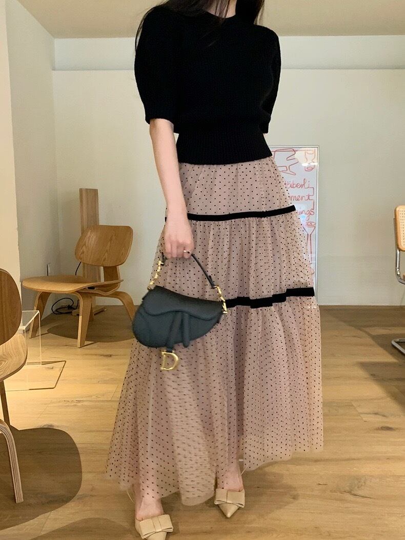全2色ドットレースチュールスカート