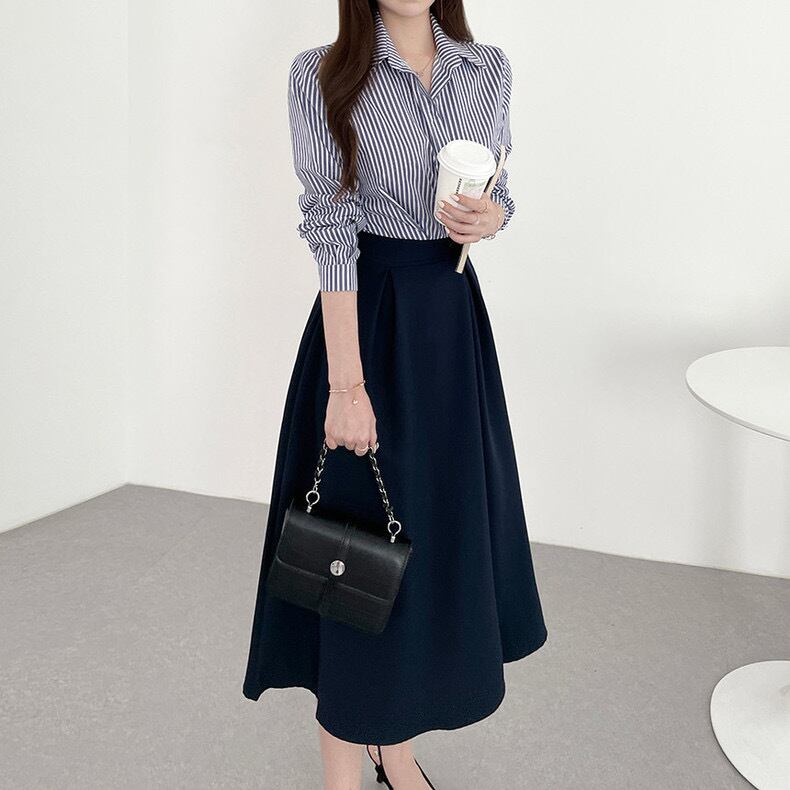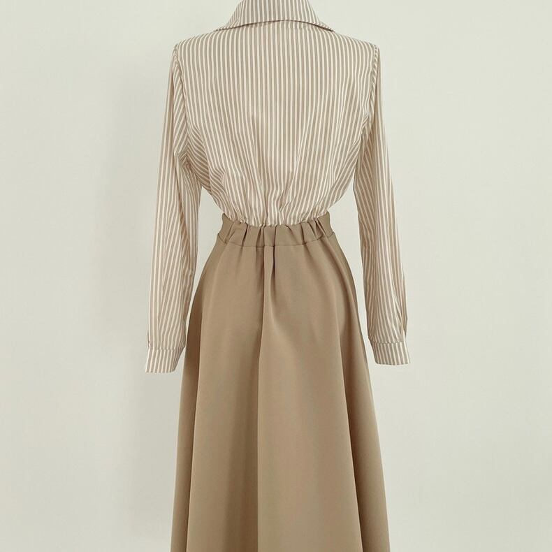全2色ストライプカラー×フレアスカートドドッキングワンピース