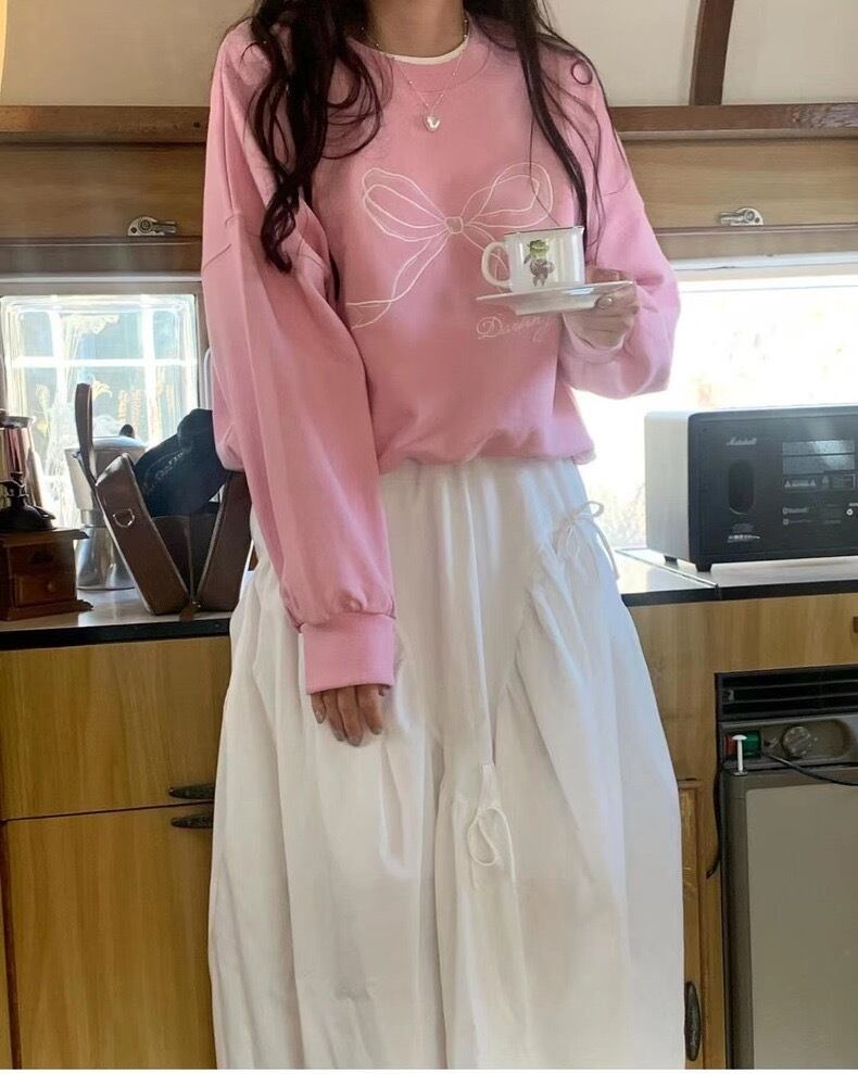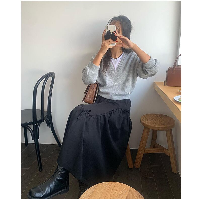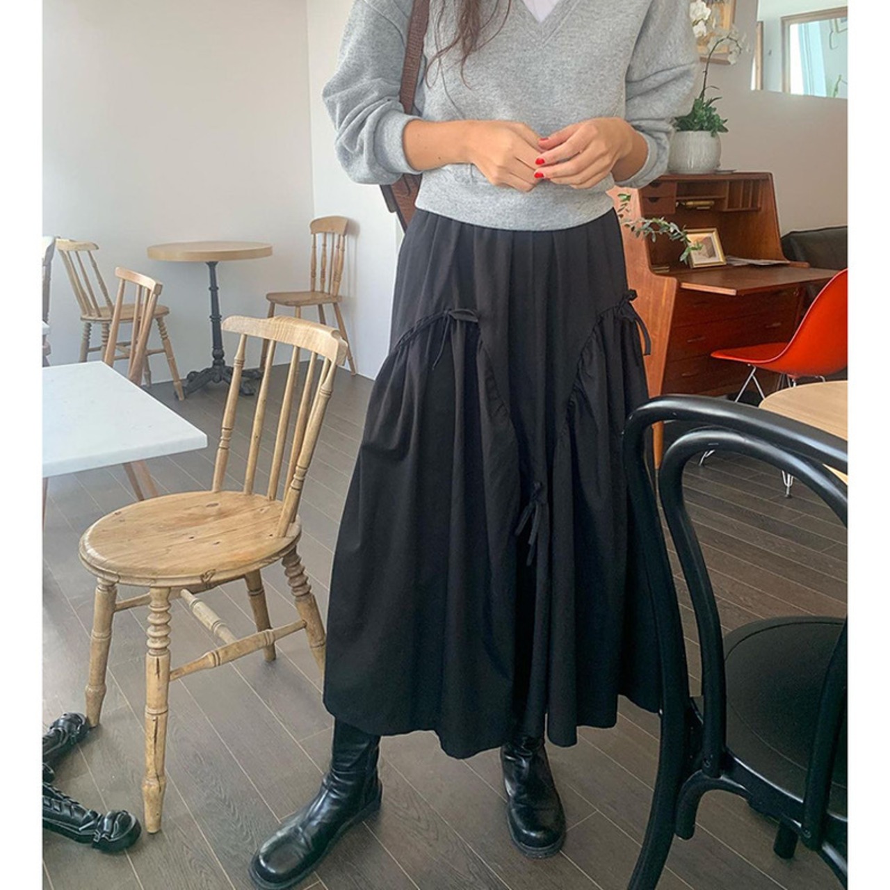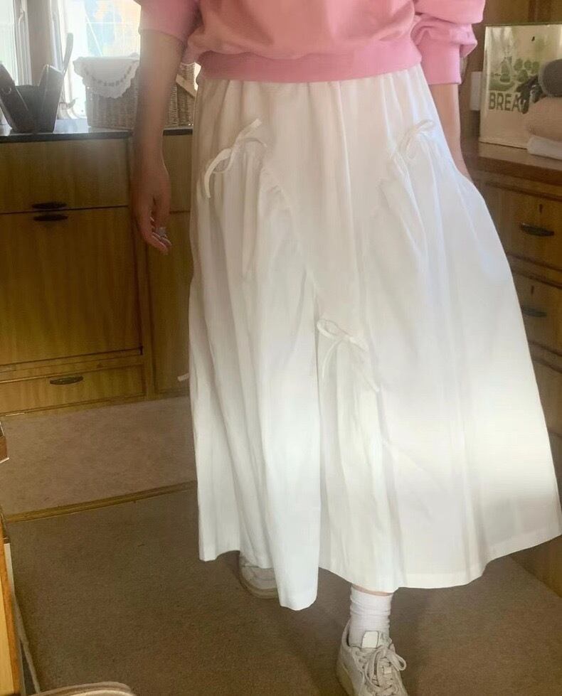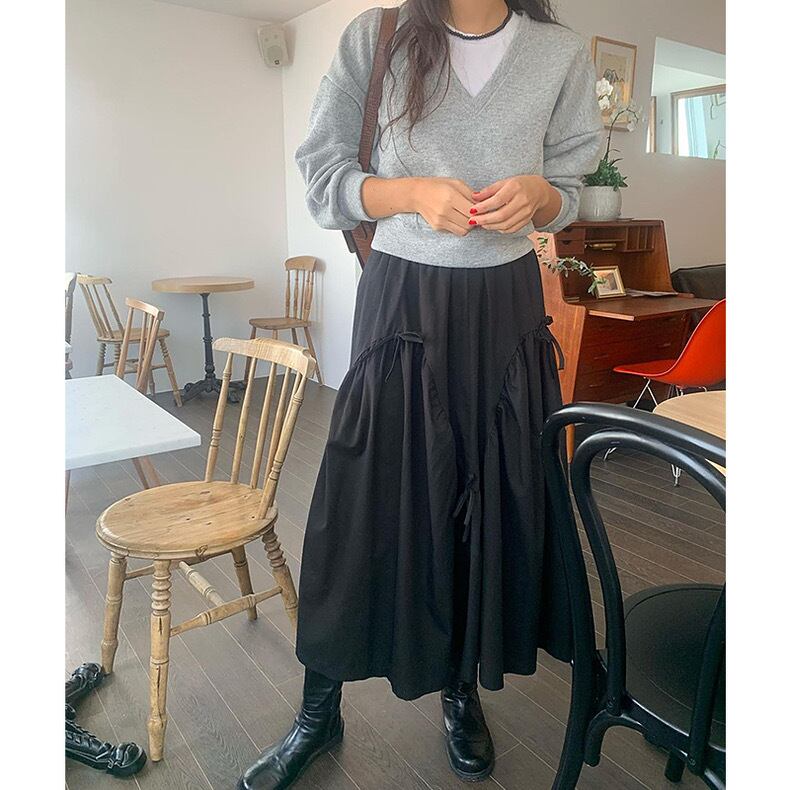 全2色ミニリボンフレアロングスカート