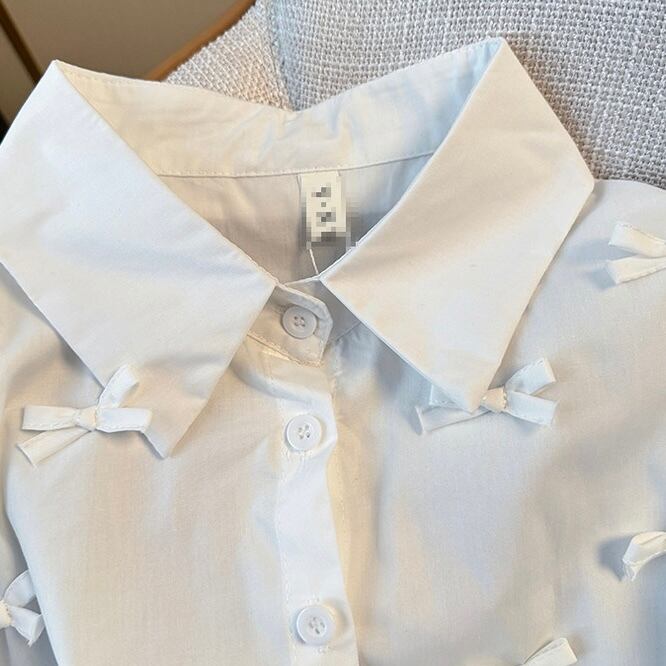 クロップド丈リボン付きシャツ