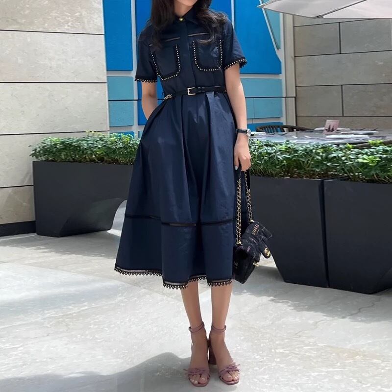 Tall✰全2色レース縁取りレギュラーカラーワンピース