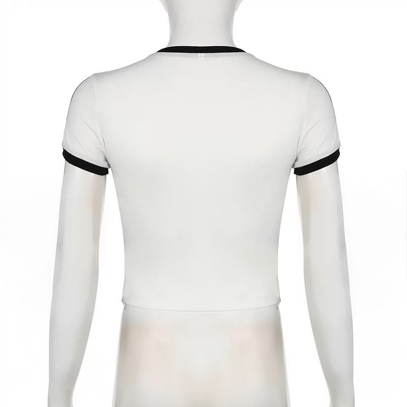 袖ライン刺繡リボンTシャツ