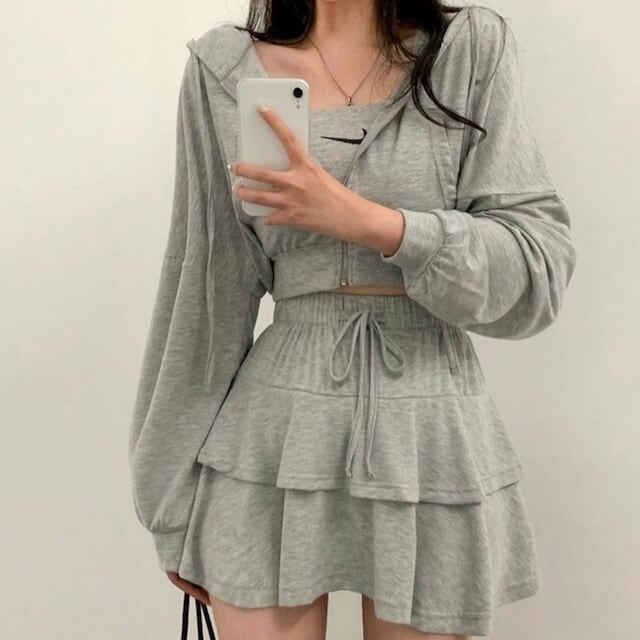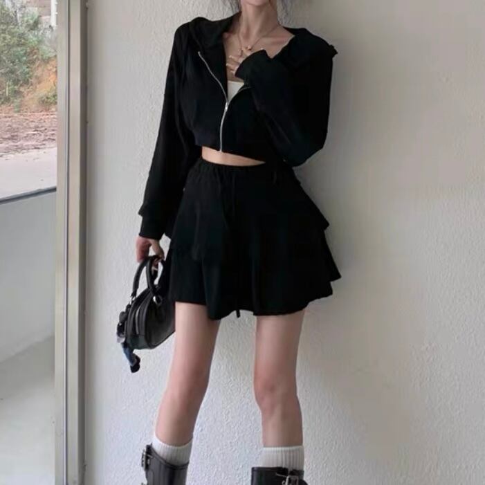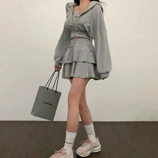 全2色ハイウエストダブルレイヤースウェットセットアップ