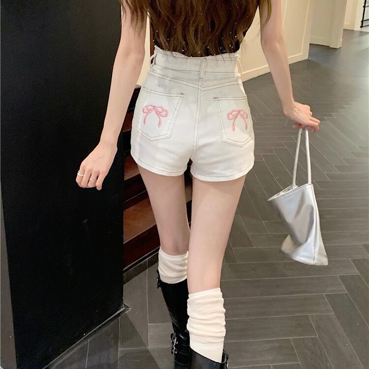 全3色バックリボンデニムショートパンツ