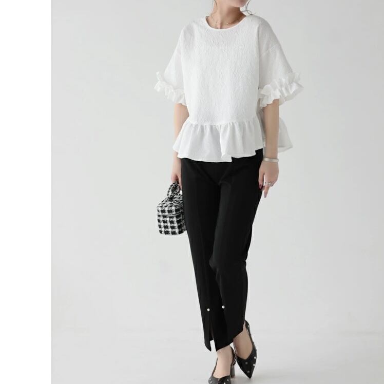 全2色フリルジャガードトップス