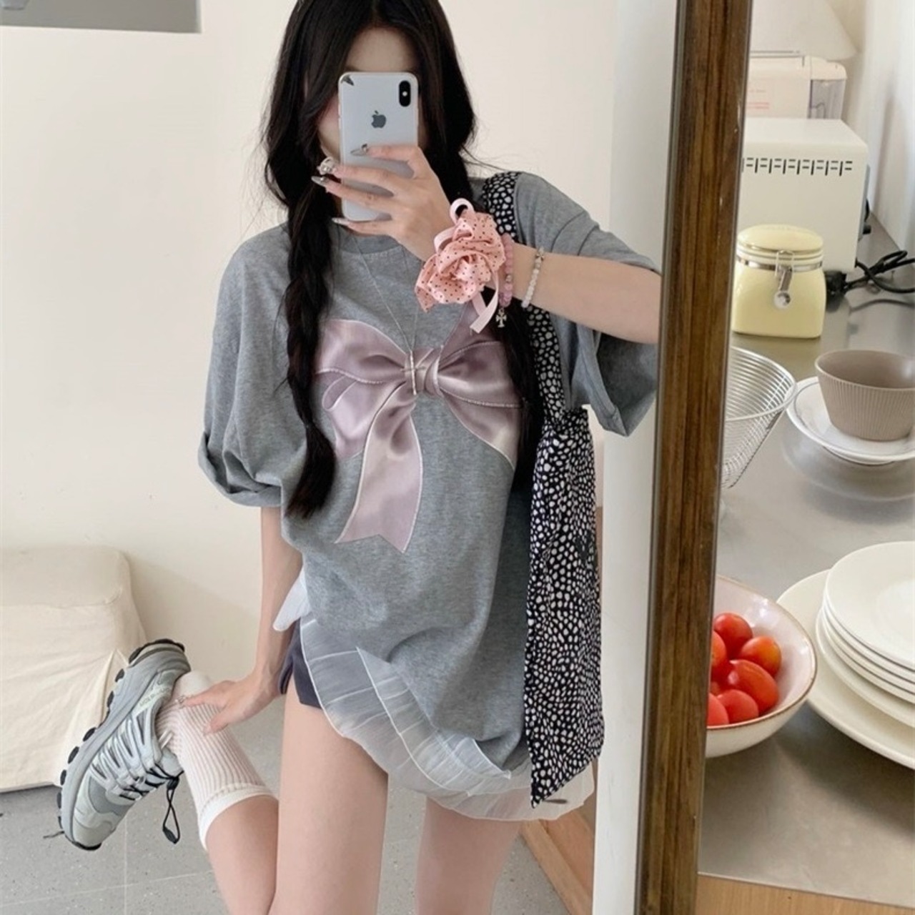 Tall✰裾レースリボンTシャツ