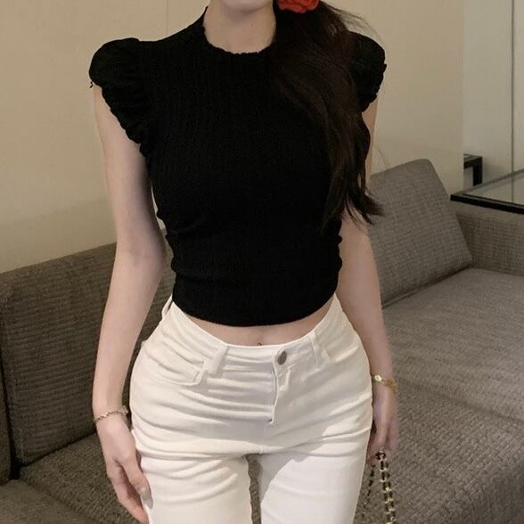 全3色ギャザーショルダーリブトップス