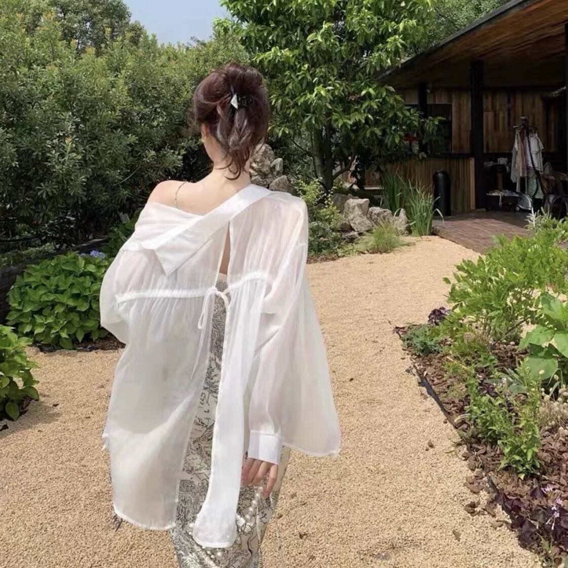 Tall✰︎バックオープンホワイトシフォンシャツ