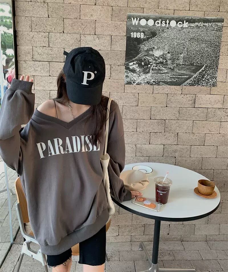 Tall✰︎全2色Vネックアルファベット薄手トレーナー